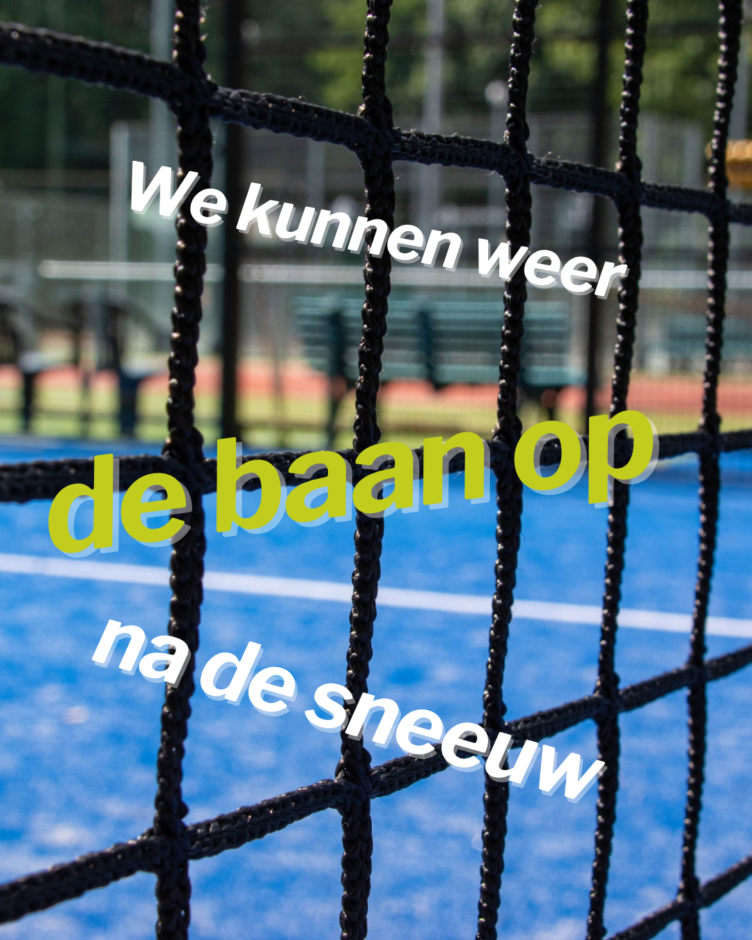 Vanaf vandaag zijn alle padelbanen en de tennisbanen 1, 4 en 5 weer beschikbaar. De padeltrainingen gaan vanaf vandaag door en de tennistraining start vanaf morgen weer.